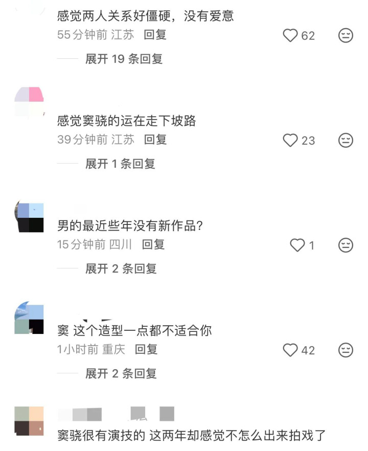 对此网友表示:“感觉两人关系好僵硬,没有爱意”