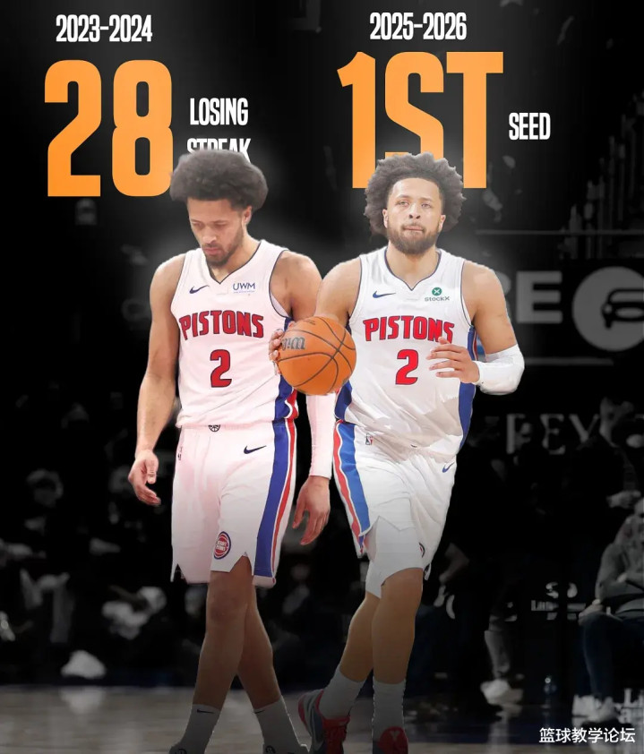北京时辰2月13日,NBA成例赛,雷霆93-110不敌雄鹿。此役事后,雷霆跌至定约第二(42胜14负,胜率75%)。活塞40胜13负,胜率75.5%,名次升至定约第一。谁能思到,两年之前的NBA垫底球队,如今的战绩领跑全定约。