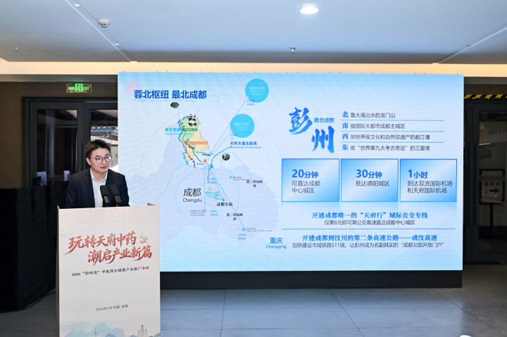 1月16日,“玩转天府中药・潮启产业新篇”2026“彭州造”中医药大健康产品推广活动在成都彭州市举办。