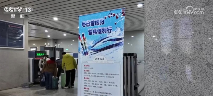 国铁沈阳局沈阳北站安检车间值班员邱爽:综合考量旅客安全、乘车秩序与雪具存放条件的基础上,选取哈尔滨西至通化D548、D547次,沈阳北至沈阳北G8131、G8133次,长春西至长春G8138、G8137次列车试点开展“雪具便利行”服务。在上述车次的固定车厢固定位置设置雪具存放区域,具体办理车站包括沈阳北、抚顺、通化、长白山西、长白山、吉林等18个车站。