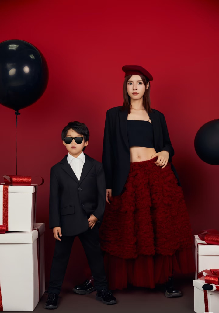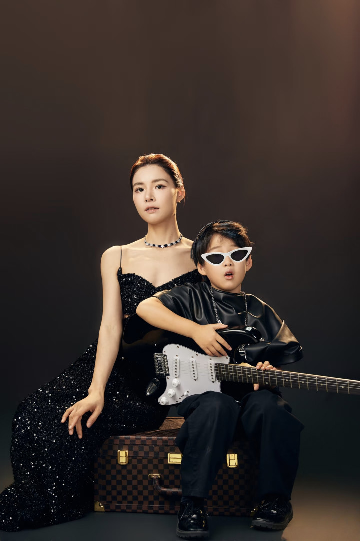 廖语辰带两个儿子拍了一组非常帅气的照片。