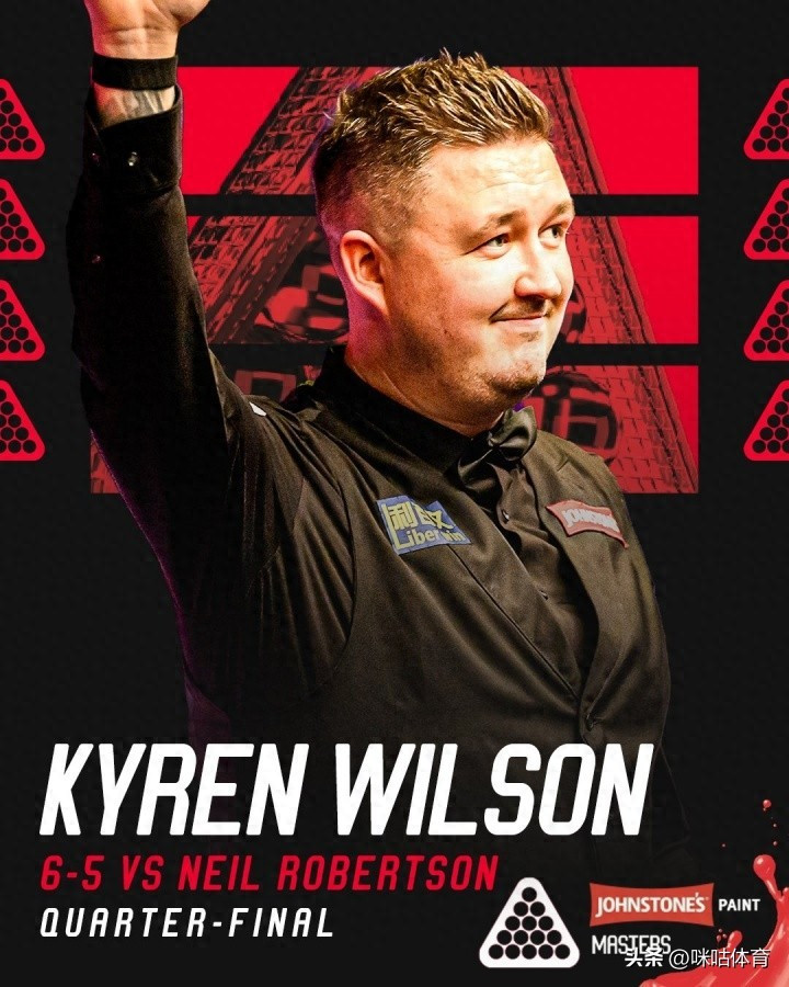 1 月 17 日凌晨,伦敦亚历山德拉宫上演了一场足以载入史册的斯诺克大师赛 1/4 决赛。世界排名第 2 的凯伦・威尔逊与世界第 3 的尼尔・罗伯逊激战 11 局,在一度 4-1 领先却被对手连追四局逼至赛点的绝境下,"囧哥" 展现出钢铁般的意志,最终以6-5完成惊天逆转,成功晋级四强,将在半决赛中对阵中国小将吴宜泽。