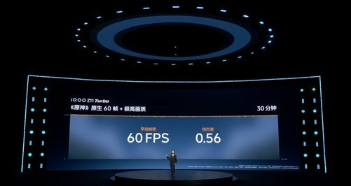 [ZOL中关村在线原创新闻]性能配置方面,iQOOZ11Turbo搭载骁龙8Gen5芯片,LPDDR5XUltra内存(9600Mbps)、UFS4.1闪存,冰穹VC液冷散热,原神极高画质游玩30分钟平均帧率60fps,平均功耗4.54W。