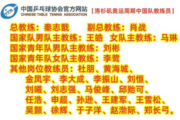 本月十二日,中国乒乓球协会公布了国家乒乓球队及国家青年队的教练组名单。这支最强军团的"幕后功臣"们,阵容呈现出多样化的特点。让我们再次确认一下这些总教练和教练员的名字。
